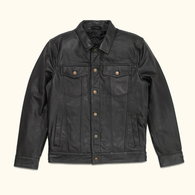 What do you get when you combine the iconic structure of a denim trucker jacket with the rugged class of a fine leather jacket? You get the Driggs Leather Jacket.