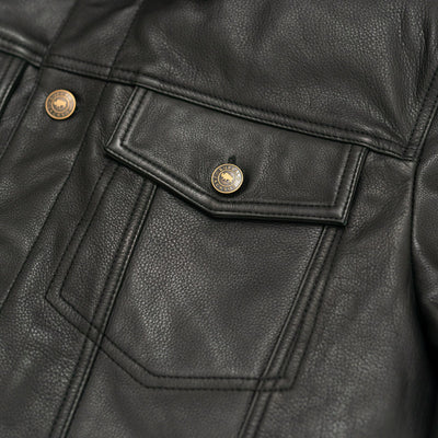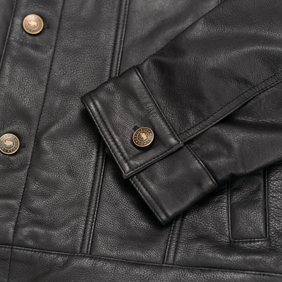 While we love the heritage of denim jackets, first introduced in the late 19th century as work apparel for the likes of cowboys, miners, and railroad workers, we had to make it our own —and make it leather. This black leather denim jacket will easily become your year-round go-to, and the more you wear it, the better it will look.