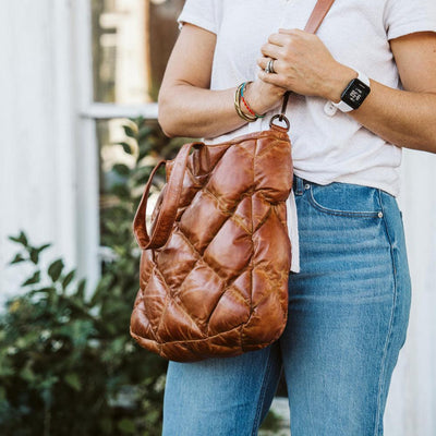 Introducing the Bridger Puffy Sheepskin Leather Tote – where vintage style meets effortless functionality. Crafted from premium full-grain sheepskin leather, this puffy, quilted exterior exudes a contemporary flair, perfect for elevating any outfit with a touch of sophisticated texture.