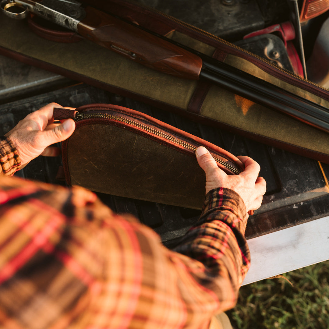 But an heirloom quality waxed canvas pistol case is what we set out to develop. Made from the most rugged and dependable materials to last as long as your handgun. From the sherpa scratch resistant polyester lining to the leather trim with heavy weight and durable waxed canvas exterior.