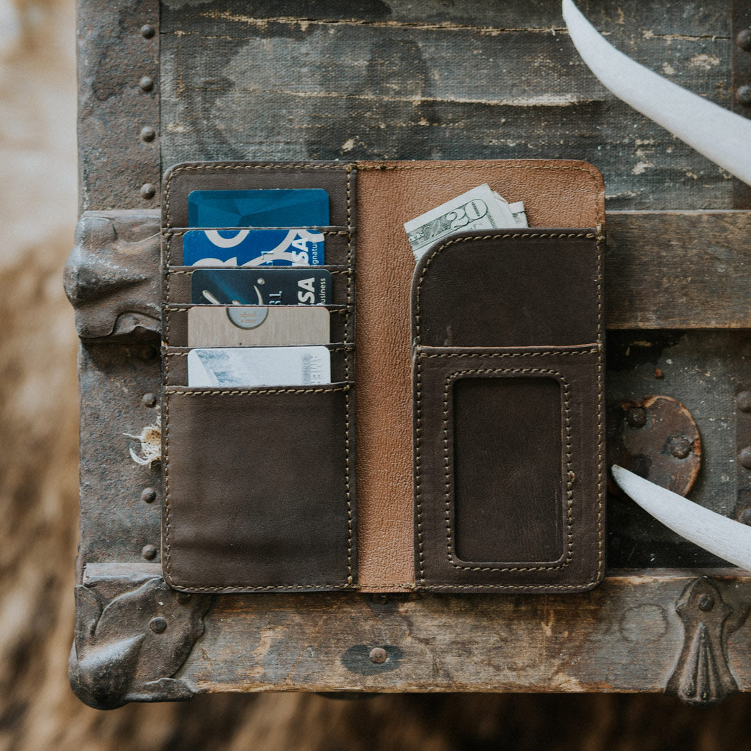 The Denver Leather Checkbook Wallet is built for exactly what you would think. It affords you the room to plan for such misadventures. Stick it inside the chest pocket of your travel blazer, and think twice before you compliment. This 100% cow leather checkbook wallet is made for travel, with all the bumps and turns along the way.