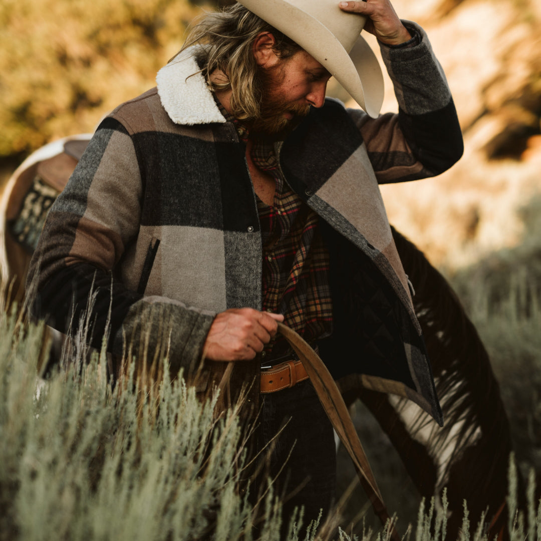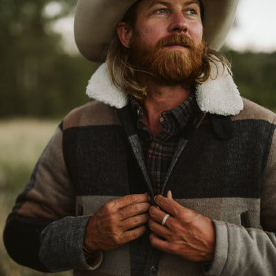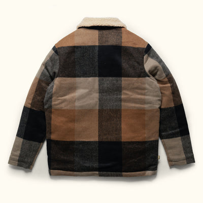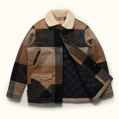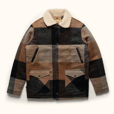 Our signature wool blend jacket features a vintage block plaid design topped with a sherpa collar. Easy-access hand warmers accompany dual patch pockets at the waist to sustain you all winter long. A design trusted by our forebearers and carried onward; the Ellis faces any cold front with enduring reliability.