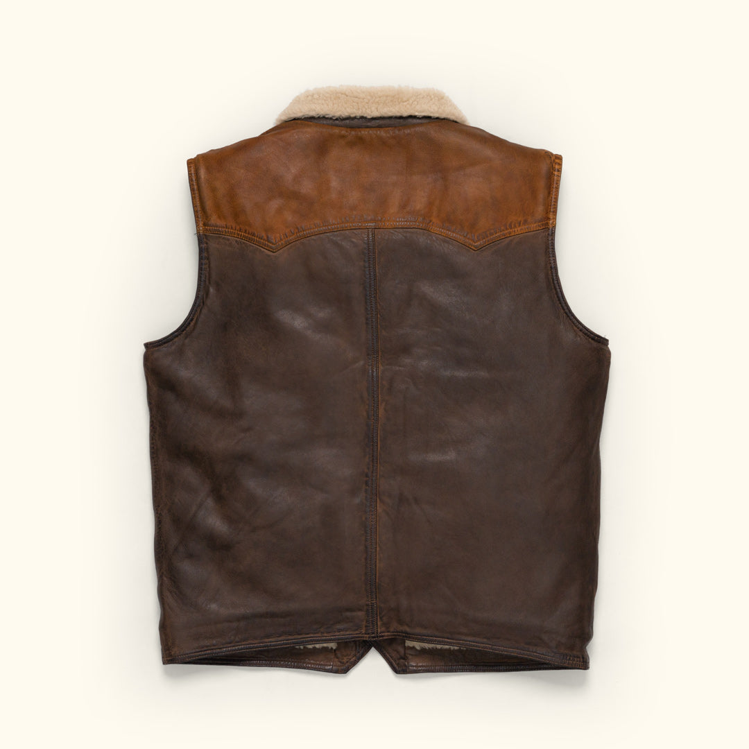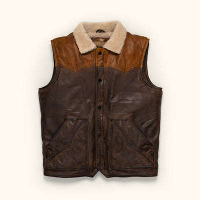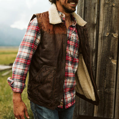 Paired with your favorite worn-in flannel or moleskin, the Jackson Leather Sherpa Vest distinctively showcases an authentic western appeal.