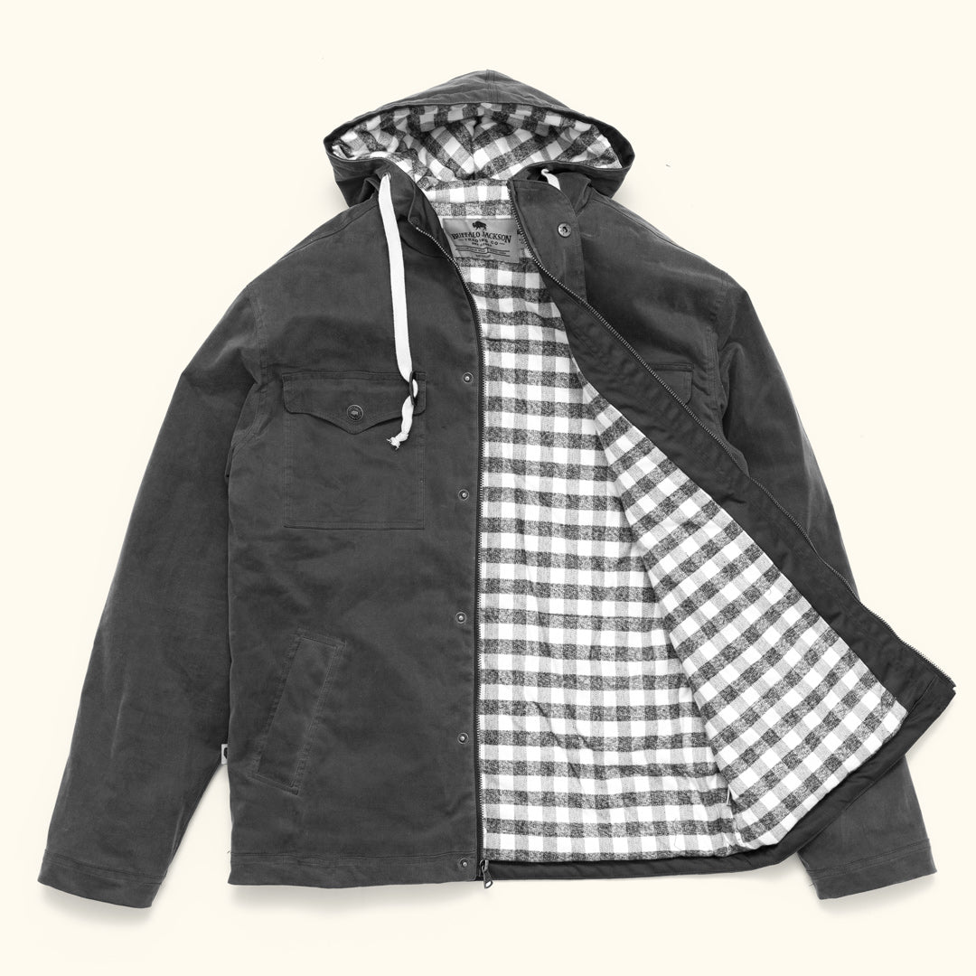 The Marshall Hooded Jacket is a mid to lightweight waxed canvas jacket designed to get you from doorstep to desk and back home again. A flannel-lined interior, hood, pockets, and drawstring cord ensure you're stylish enough should you decide to run for city office or stand alongside an old friend as he says "I do." Disregard my friend's smart-aleck attitude – the Marshall Hooded is one great jacket.