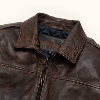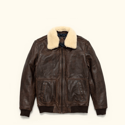 An inspired Maverick leather jacket as rugged and iconic as the battle-tested captains of the sky. Where classic aviator style meets first-class quality and design. Crafted with 100% genuine lambskin leather, our vintage brown leather bomber jacket features a zip closure, ribbed cuffs and waist, and a detachable sherpa collar to provide extra warmth and comfort for brisk nights on the town or chasing the horizon.