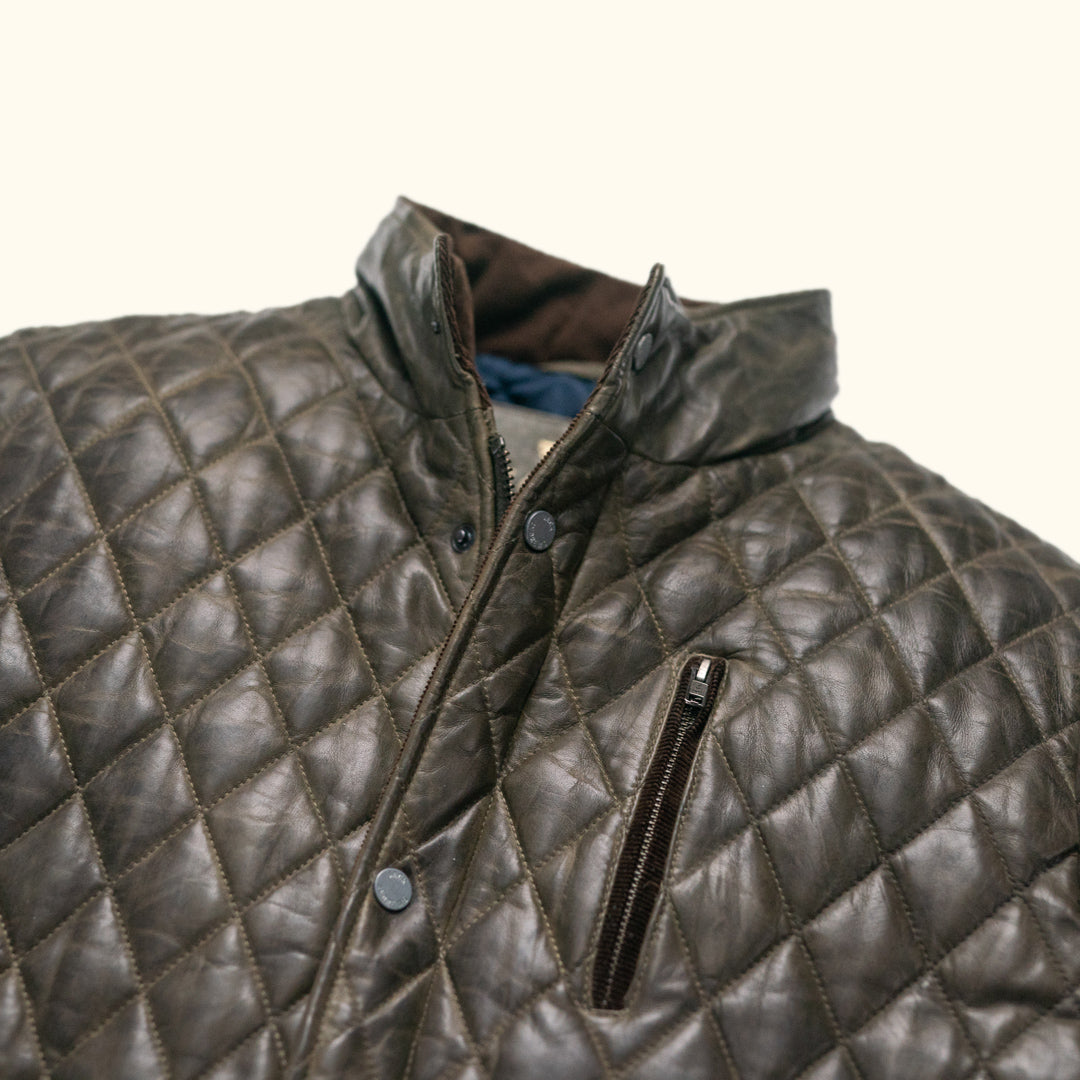 | Highlands Quilted Leather Jacket, Olive Green | ||||||