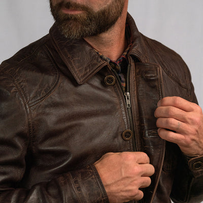 Inspired by the old west ranchers who made their mark at the base of the Bighorns, the Sheridan Leather Barn Coat delivers enduring quality worthy of the pioneers of the past, tailored with a modern fit for the present. Outfitted with 100% full-grain lambskin leather, the Sheridan is secured by a top-to-bottom zipper concealed beneath distressed antique brass buttons, shielding an easy-clean lining that offers ample comfort and utility from sunup to sundown.