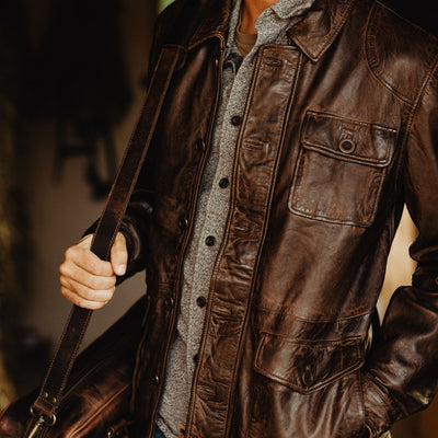 Twin button-flap pockets at the side and one at the chest are complemented by a zipper and open interior compartments for safekeeping. Embodying a frontier spirit and contemporary style, the Sheridan is purposefully designed to be worn in, but never worn out.