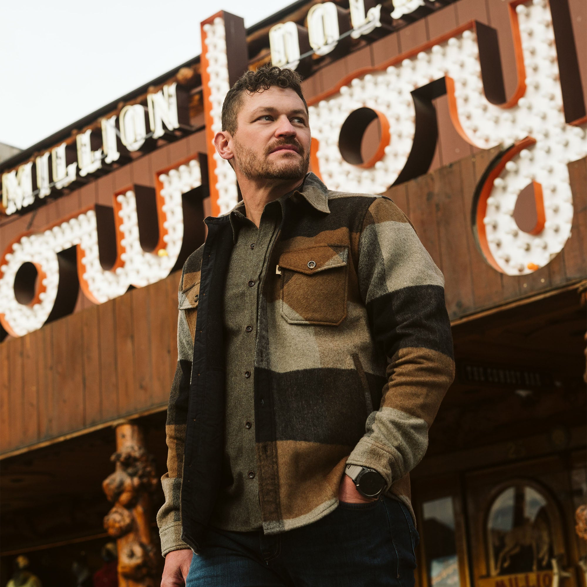 Embrace the spirit of adventure as the sun ascends over the rugged peaks of Yaak Valley. When the chill of the morning engulfs you, trust in the reliability of our Yukon Wool Shirt Jac in Desert Valley Plaid.