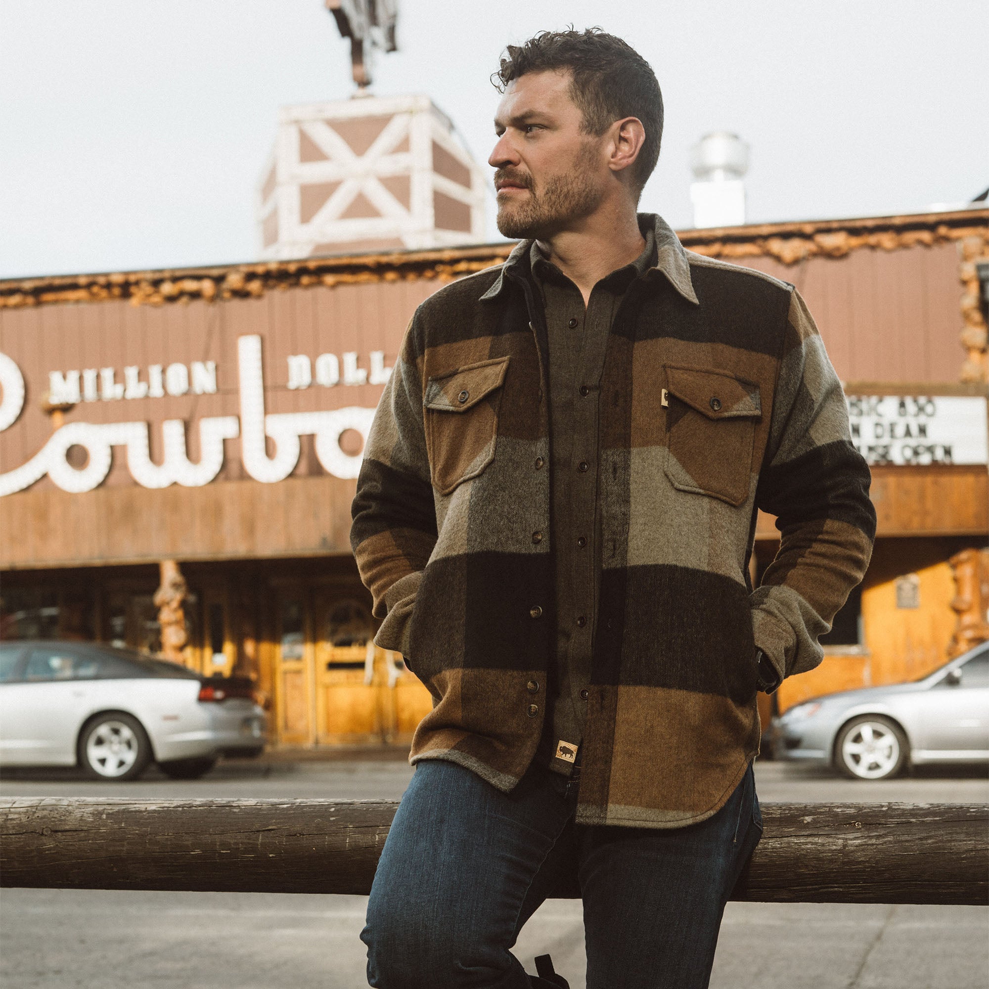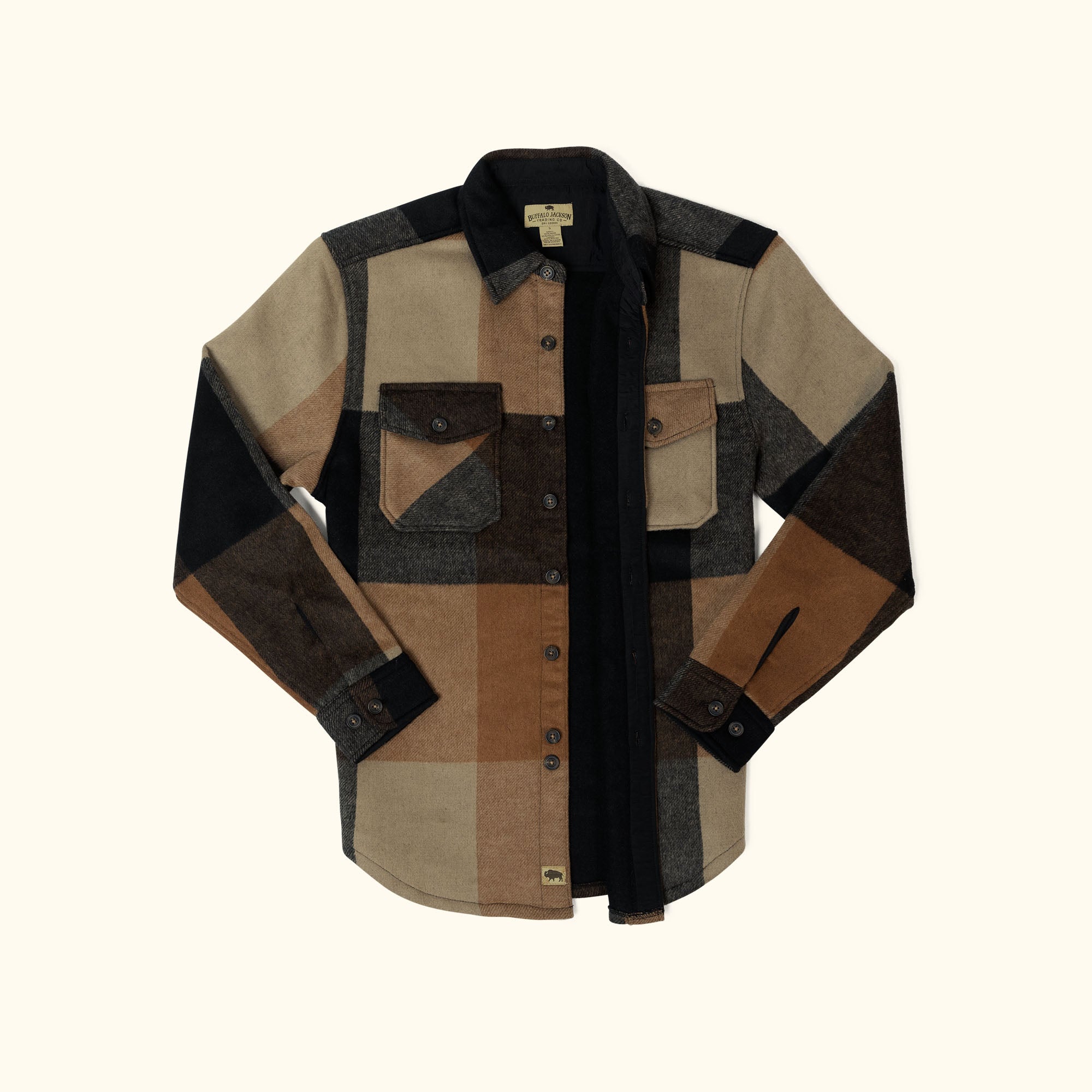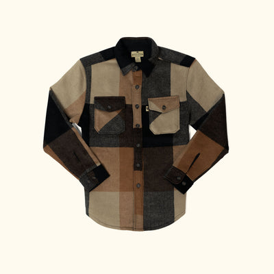 The timeless earth tone color-block pattern, reminiscent of the wild past, adds a touch of classic charm to your attire. Whether you're chasing the perfect mountain sunrise or seeking solace in nature's embrace, our Yukon Wool Shirt Jac in Desert Valley Plaid is your steadfast companion, inspired by the spirit of the rugged gentleman.